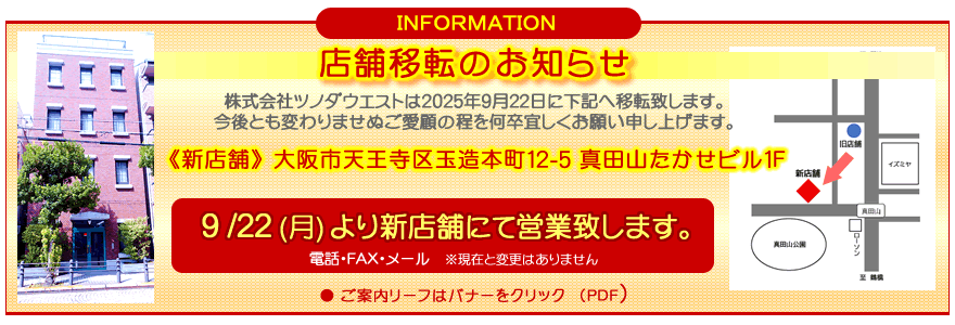 株式会社ツノダウエストでは当社取扱い商品の全てを展示販売しておりますツノダ・ウエスト 専門ショップを設けております。バッグ財布等の金具や材料、皮革材やがいつでもお気軽にご購入頂けます。そして店頭ならではのお得な企画を実施しておりますので是非ご来店下さい。また商品に関しますお問合せやご注文、ご相談は随時対応させていただきますのでお気軽にご連絡下さい。 |