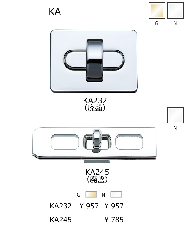 主にバッグや財布のかぶせ部分の使用するヒネリ金具は売れ筋な形状の商品を用意しております。御社の製品に合うヒネリ金具をお選び下さい。また止め金具以外にも南京錠や引手金具もラインアップしております。